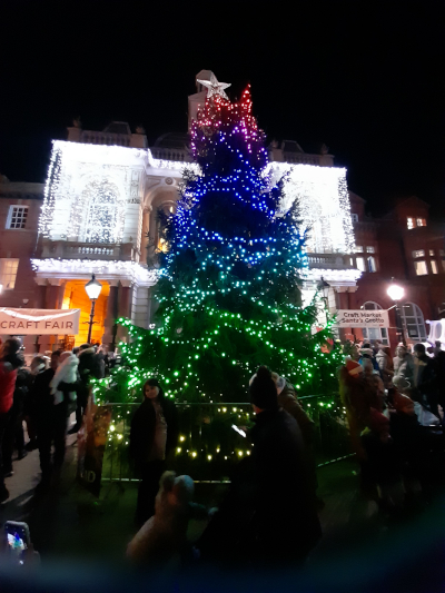 ◄ Retford Town Hall illuminated at 2024 Christmas Tree Lighting event.
